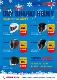 Aktuality DNY SHARK! Akční nabídka HELMY DNY SHARK! Akční nabídka HELMY 10. 12. 2025 SPARTAN GT CARBON TRACKER SPARTAN GT E-BRAKE PARTAN GT REPLIKAN Gold SPARTAN 1.2 ADRAIN PARASSOL SPARTAN GT BLANK Mat Black SPARTAN 1.2 BLANK Red VARIAL REPLICA TIXIER Yellow VARIAL REPLICA TIXIER Red SKWAL 2.2 NOXXYS Blue/Yellow SKWAL 2.2 NOXXYS Red/Silver SKWAL i3 LINIK Mat Yellow SKWAL i3 LINIK Mat Anthracite SKWAL 2 BLANK Mat Silver SKWAL 2 BLANK White LED CITYCRUISER DUAL BLANK Silver CITYCRUISER DUAL BLANK Red CITYCRUISER KARONN Blue MICRO BLANK MAT Black Ke stažení (1) Ke stažení DNY SHARK!_Leták_Akce_Přilby_Motohobby_Kyjov (pdf, 3.1 MB) Galerie (2) Galerie